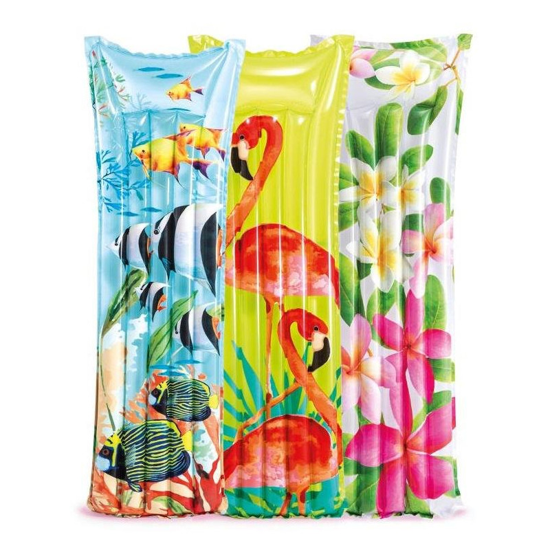 Nafukovací lehátko Intex je jednoduché dvoukomorové nafukovací lehátko. Lehátka jsou dostupné v různých barvách.