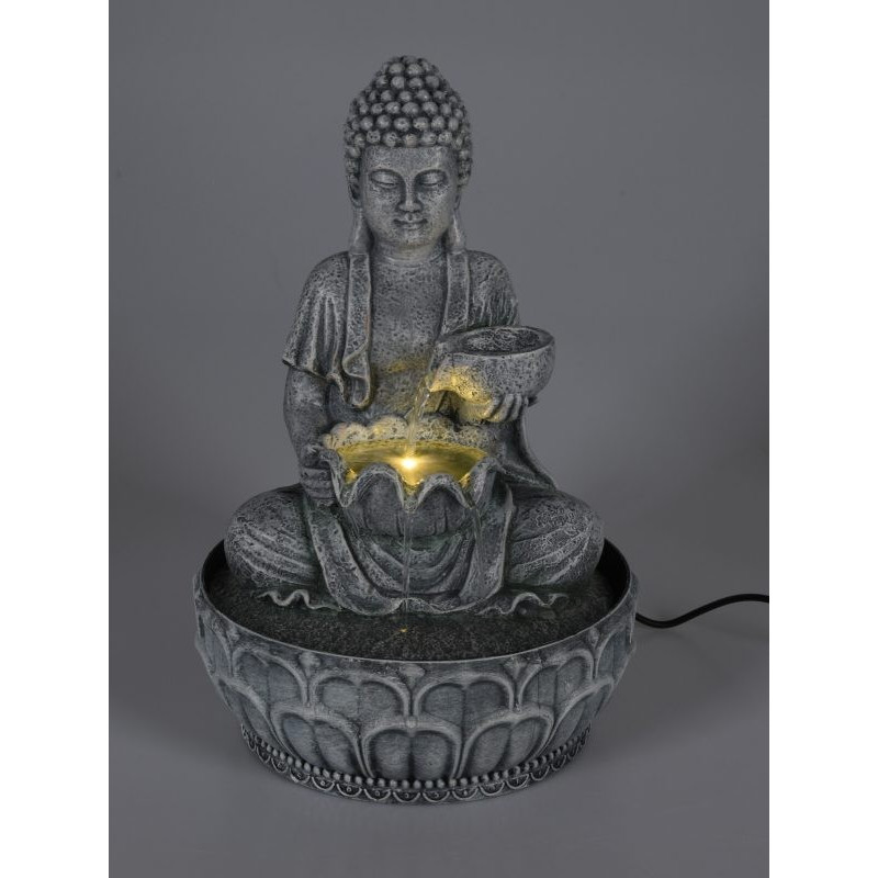 Fontána pokojová s LED osvětlením 29 cm Budha šedá