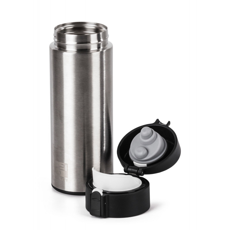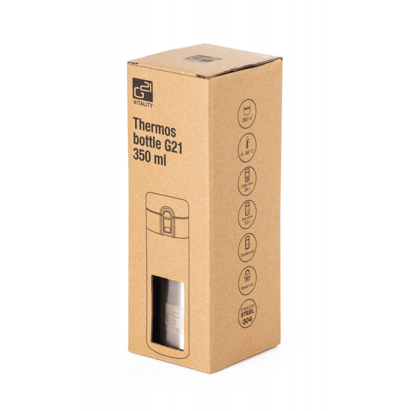 Největší předností termohrnku G21 je kvalitní termoizolace. Termoláhev z nerezové oceli má dvojité stěny a dokonale těsnící víčko. Nápoje tak udrží v požadované teplotě opravdu dlouho – horké až 12 hodin, studené k osvěžení až 24 hodin.