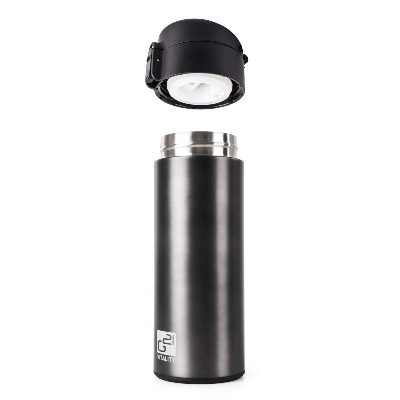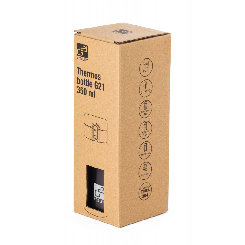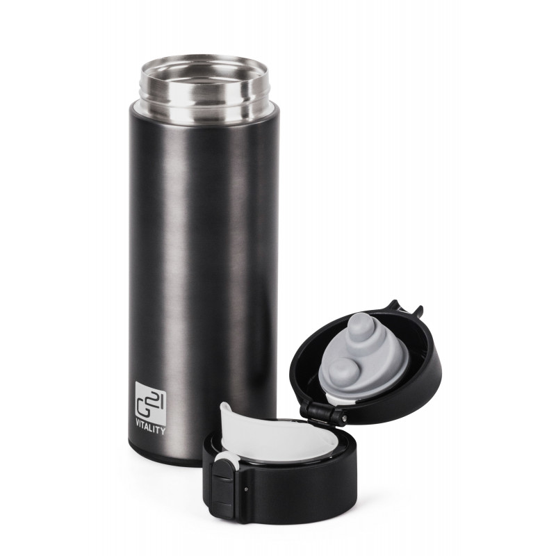 Největší předností termohrnku G21 je kvalitní termoizolace. Termoláhev z nerezové oceli má dvojité stěny a dokonale těsnící víčko. Nápoje tak udrží v požadované teplotě opravdu dlouho – horké až 12 hodin, studené k osvěžení až 24 hodin.